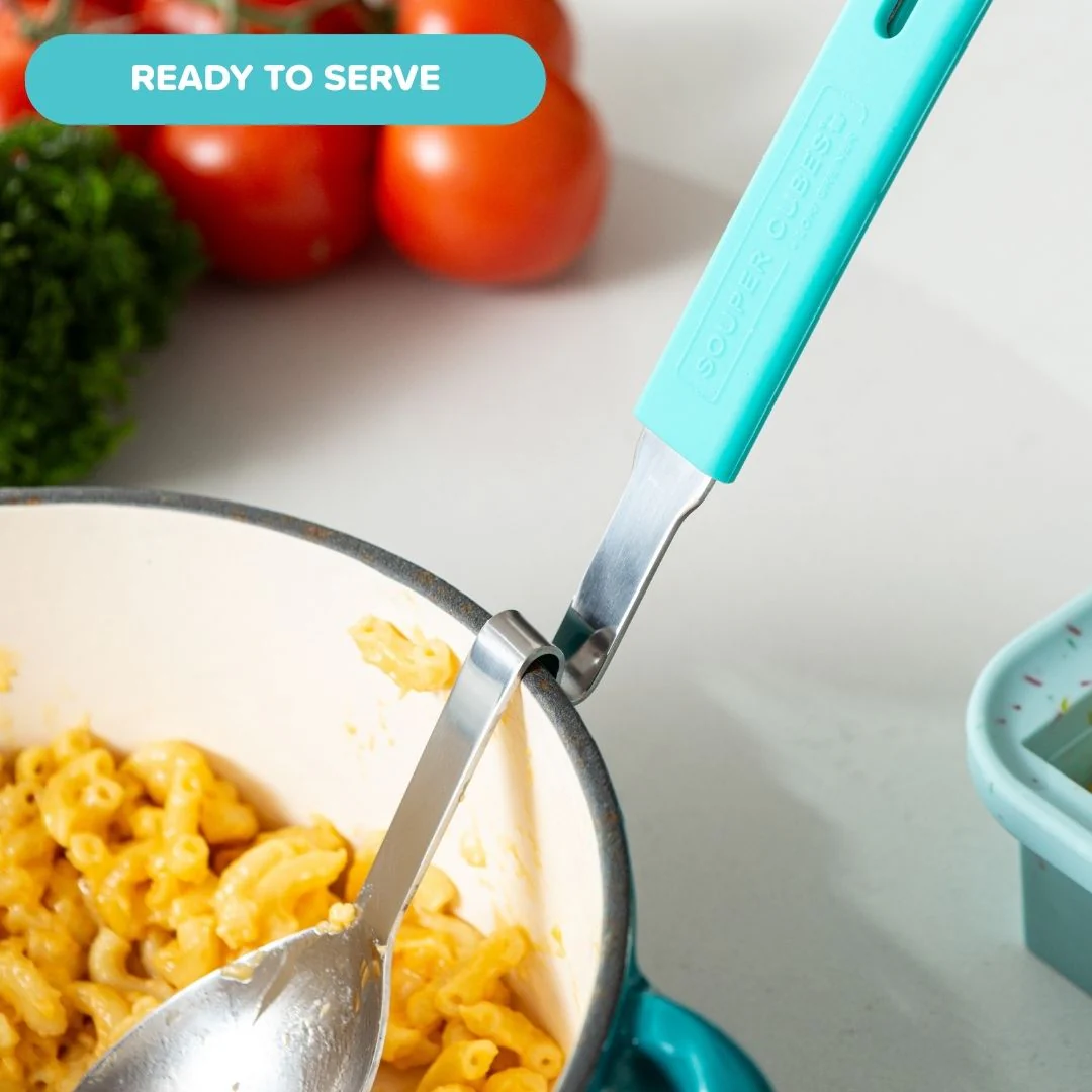 Say goodbye to spoon rests and sauced up counter tops. Let your ladle or spoon hang out on the rim of the pot instead. The silicone handle will stay cool to the touch.